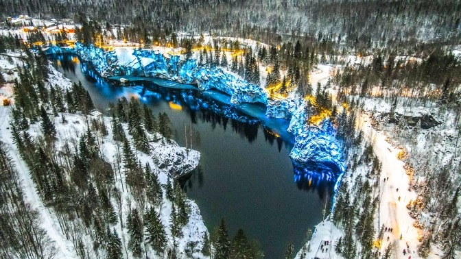 — 16:30-19:00 — посещение горного парка «Рускеала» с вечерней подсветкой: