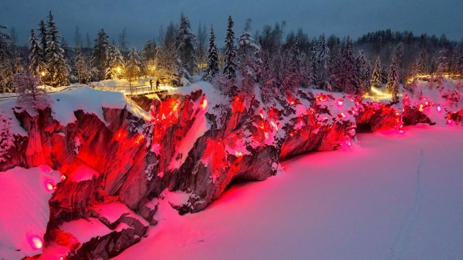 — с 14:00 до 17:30 посещение горного парка «Рускеала» с вечерней подсветкой (по желанию);